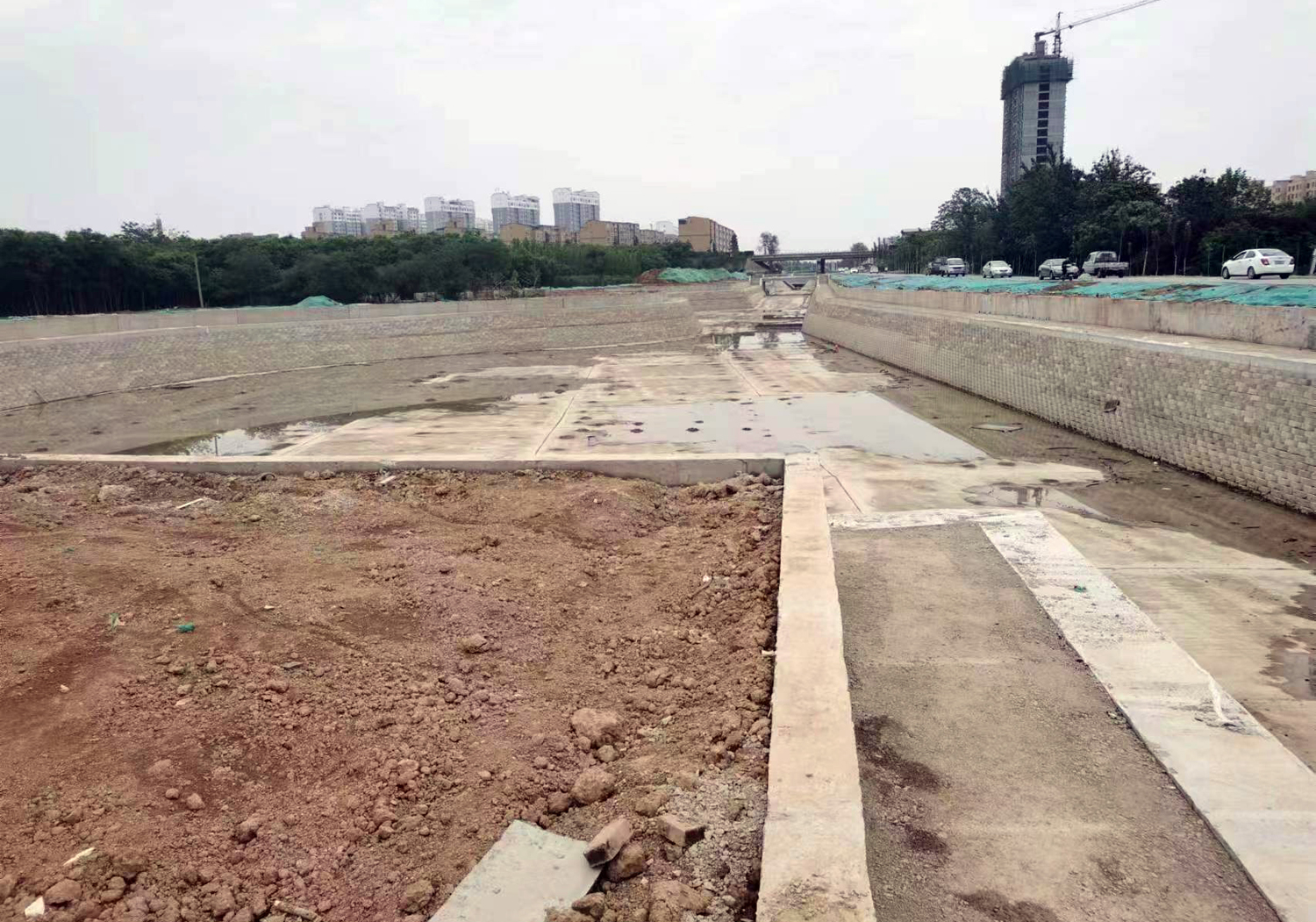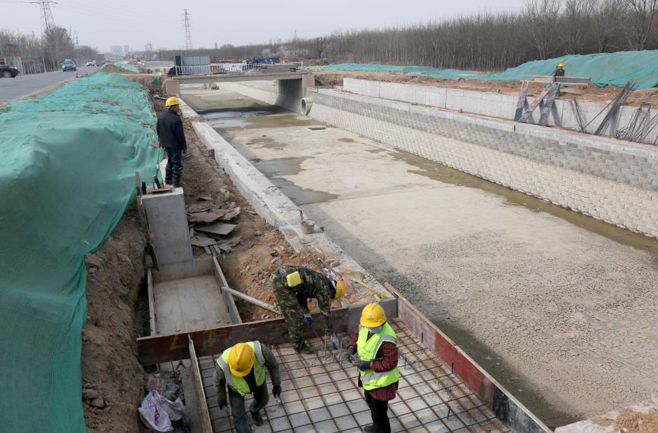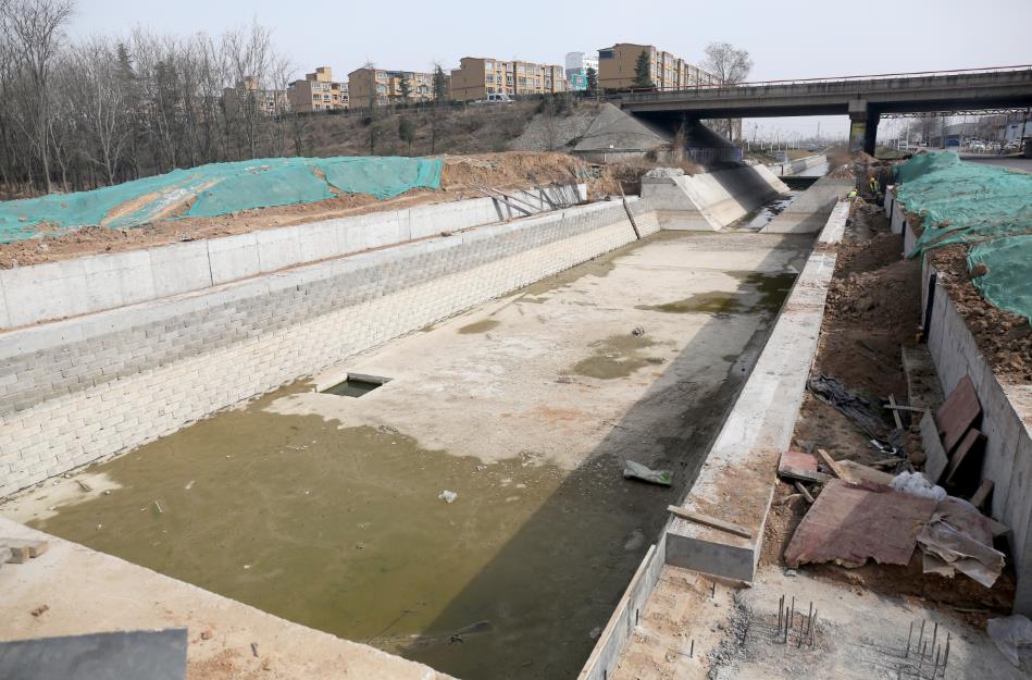 工程批復(fù)總投資4.8億元,批復(fù)工程主要建設(shè)內(nèi)容:渠道疏浚5 km;新建和改造兩岸堤防10 km;新建平板橋14座,人行拱橋3座;新建和改造截污管線4.02km;新建景觀鋼壩閘3座;渠道兩側(cè)綠化8萬m²;新建水循環(huán)泵站1座,埋設(shè)壓力管道4.8km。主要功能是泄洪、截污及景觀。2019年12月項(xiàng)目開工建設(shè),工期兩年。