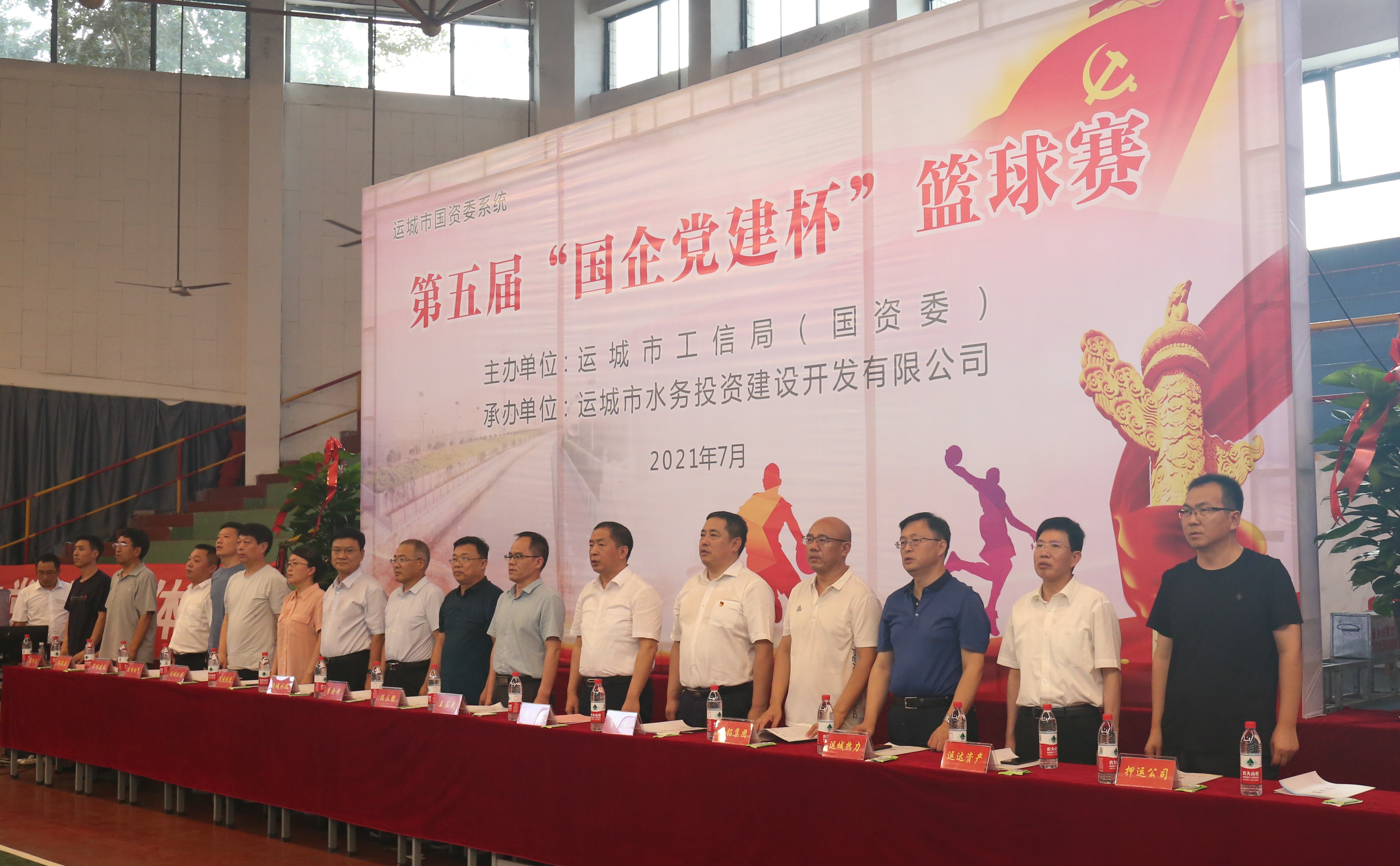 7月13日,由運城市工信局(國資委)主辦、運城市水務(wù)投資建設(shè)開發(fā)有限公司承辦的運城市國資委系統(tǒng)第五屆“國企黨建杯”籃球賽在運康中學(xué)體育館隆重開幕。市政府副秘書長王正武、市工信局(國資委)局長彭夢森、市水投公司董事長崔作銘等領(lǐng)導(dǎo)出席了本次開幕式。
