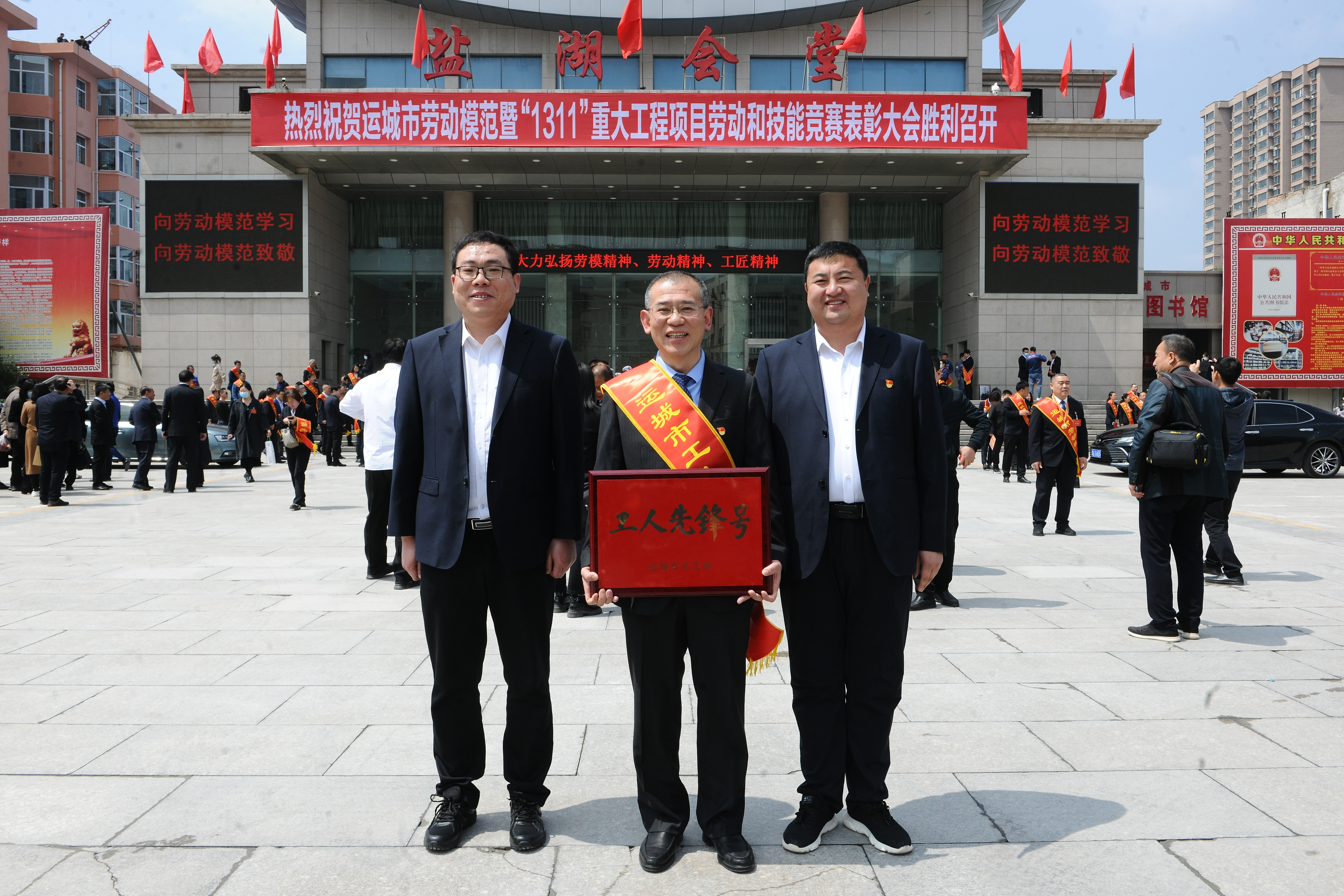 4月25日上午,運(yùn)城市勞動(dòng)模范暨“1311”重大工程項(xiàng)目勞動(dòng)和技能競(jìng)賽表彰大會(huì)在鹽湖會(huì)堂隆重召開!我公司榮獲“工人先鋒號(hào)”稱號(hào)。公司黨委委員、副總經(jīng)理、工會(huì)主席范永勝同志出席大會(huì)并上臺(tái)領(lǐng)獎(jiǎng)。