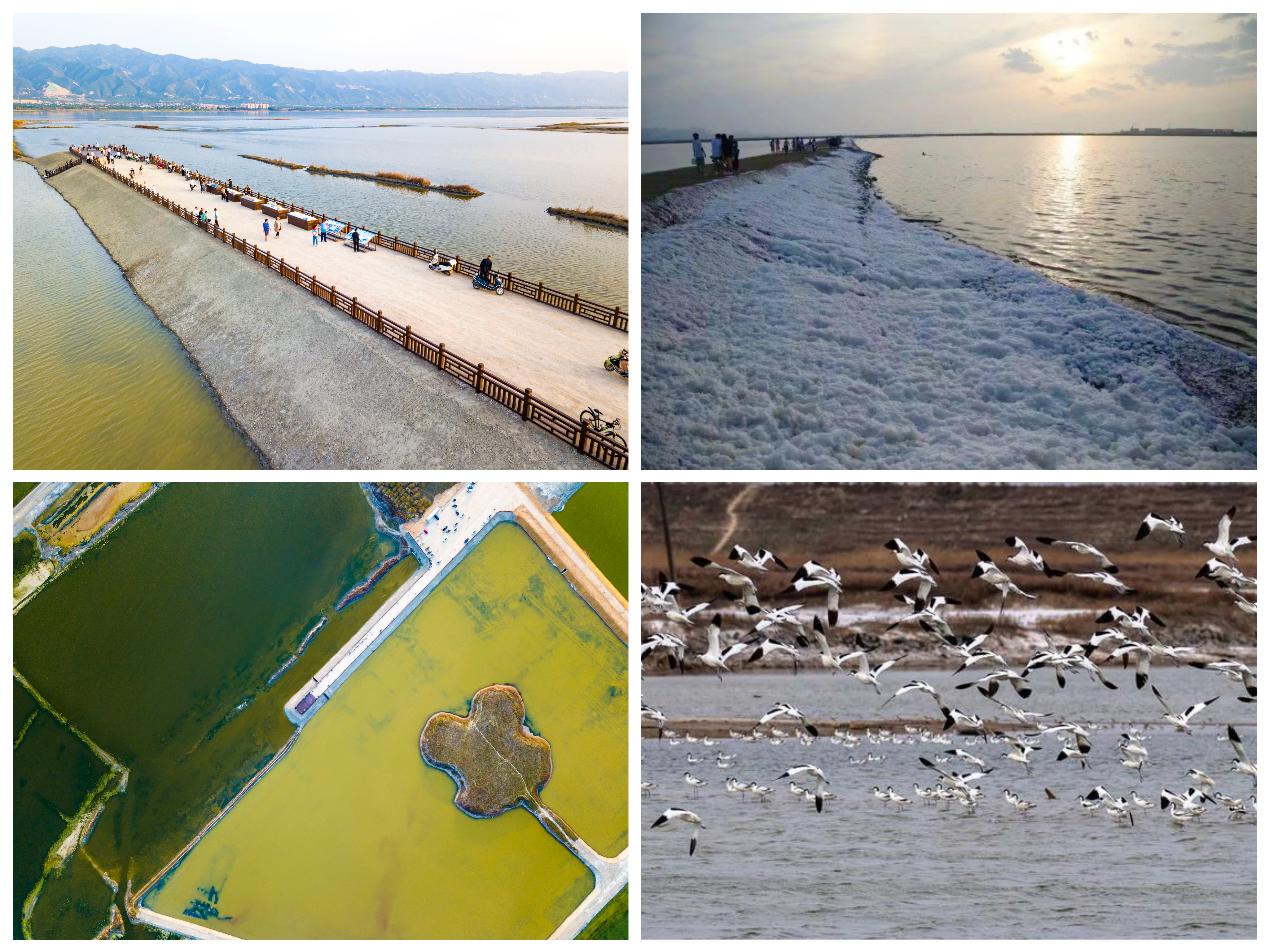 2021年以來,由我公司負(fù)責(zé)實(shí)施的鹽湖堤埝除險(xiǎn)加固及生態(tài)修復(fù)工程,經(jīng)過對原運(yùn)硝路改造、堤埝平整加固、畦田清淤、江道疏浚,完成堤埝整治98千米、環(huán)湖綠道13.14千米、雜草清理41萬平方米、草皮護(hù)坡10萬平方米、淤面清理14萬立方米;實(shí)施北坡綠化、岸帶綠化、荒灘綠化等工程,最大限度地保留了鹽湖的自然風(fēng)貌,厚植了鹽湖的生態(tài)底色。“退鹽還湖”兩年多來,鹽湖已經(jīng)逐步從礦區(qū)、工業(yè)區(qū)變?yōu)樯鷳B(tài)保護(hù)區(qū)、旅游打卡地,為鹽湖長遠(yuǎn)可持續(xù)發(fā)展預(yù)留了資源空間。