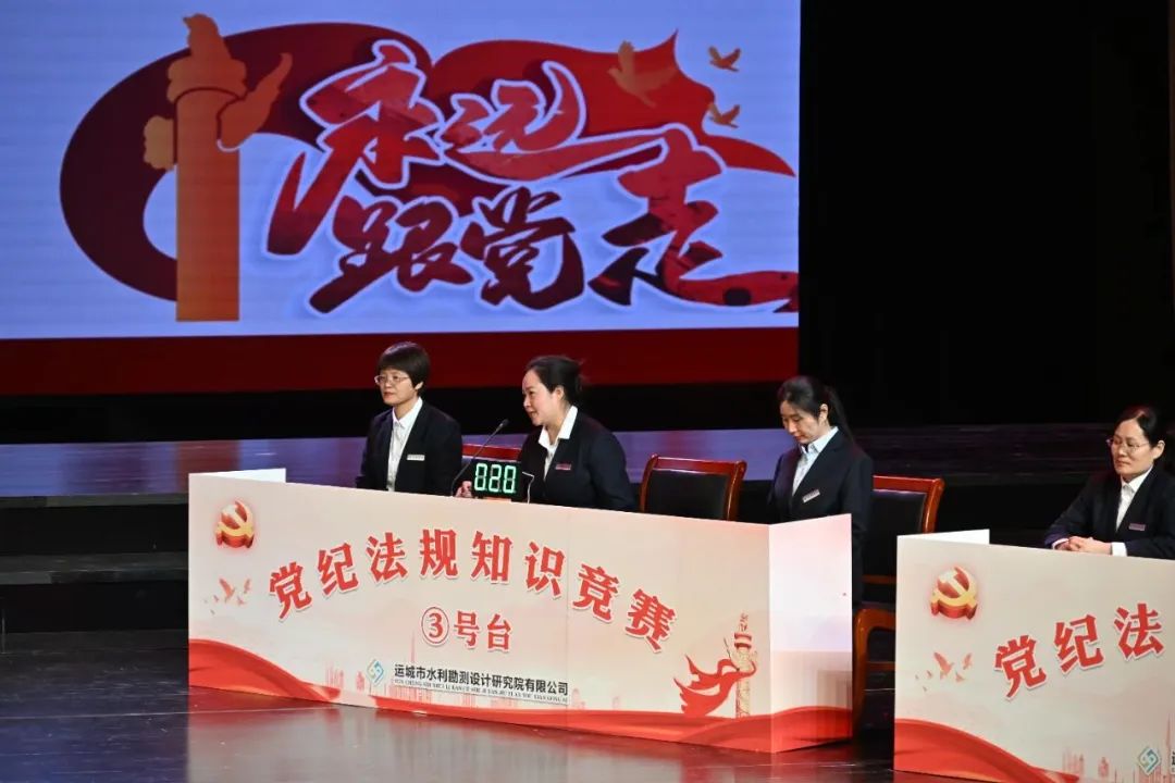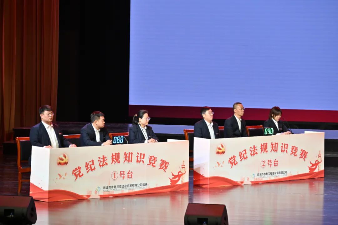 本次競賽設有必答題、搶答題、附加題、加時賽四個環(huán)節(jié),競賽內容涵蓋黨內法規(guī)、國家法律、專業(yè)知識和近期學習重點。題目靈活,重點突出,面廣意深。選手們準備充分、精神飽滿,競賽過程拼搶激烈、高潮迭起、扣人心弦。經過四輪激烈角逐,公司機關代表隊以一題優(yōu)勢勇奪桂冠,四支競賽隊伍賽出了實力風格,賽出了水投人砥礪奮進的好勢頭,充分展示了新時代廣大黨員干部勤學善思、開拓進取、奮發(fā)有為的良好精神風貌。除參賽選手外,還有500余名公司黨員干部職工在現場觀賽。此次比賽也是公司成立以來參與最廣泛、人數最多的一次知識競賽。