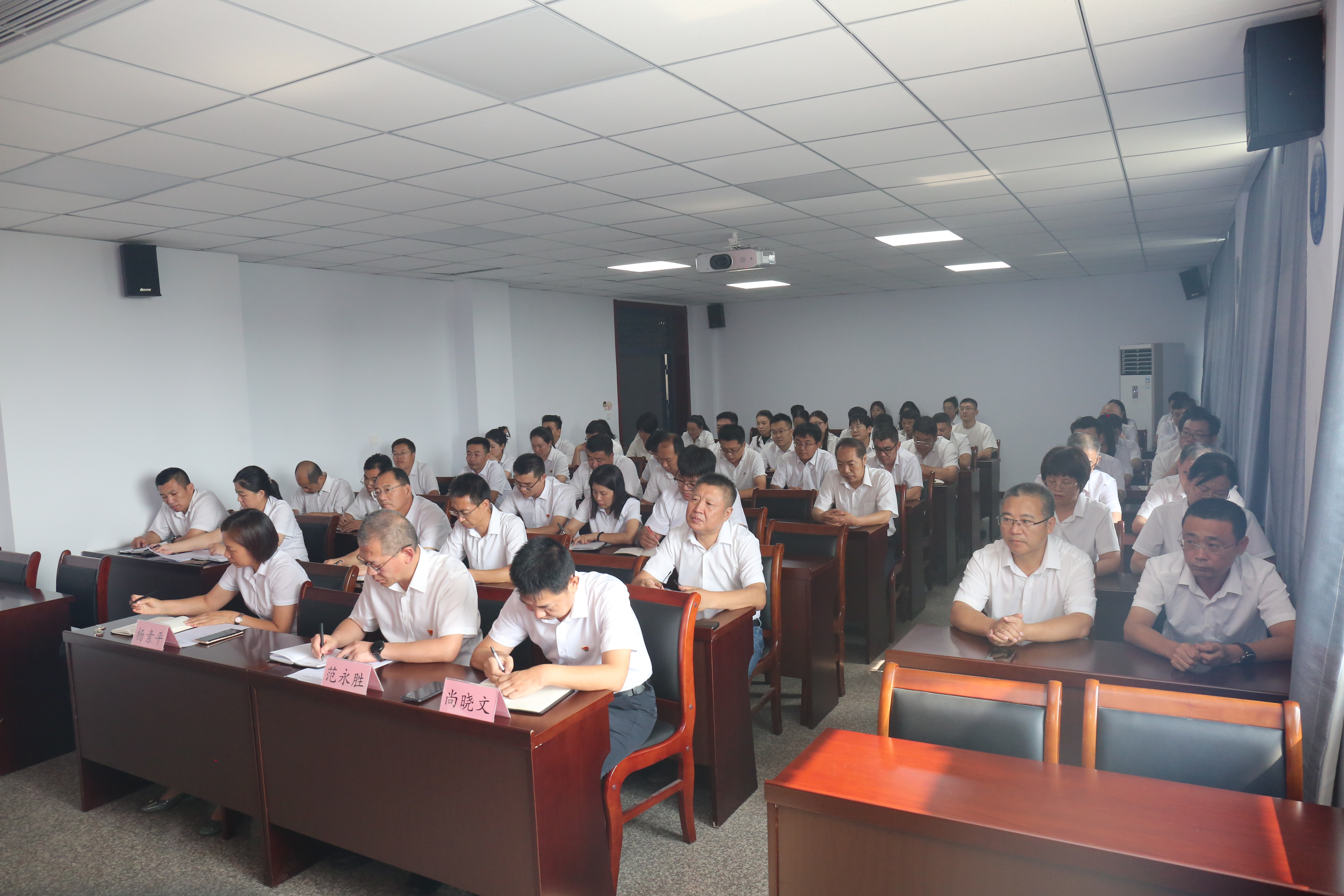 丁文玲宣讀了市委關(guān)于薛文兵同志任市水投公司黨委書記的通知。
