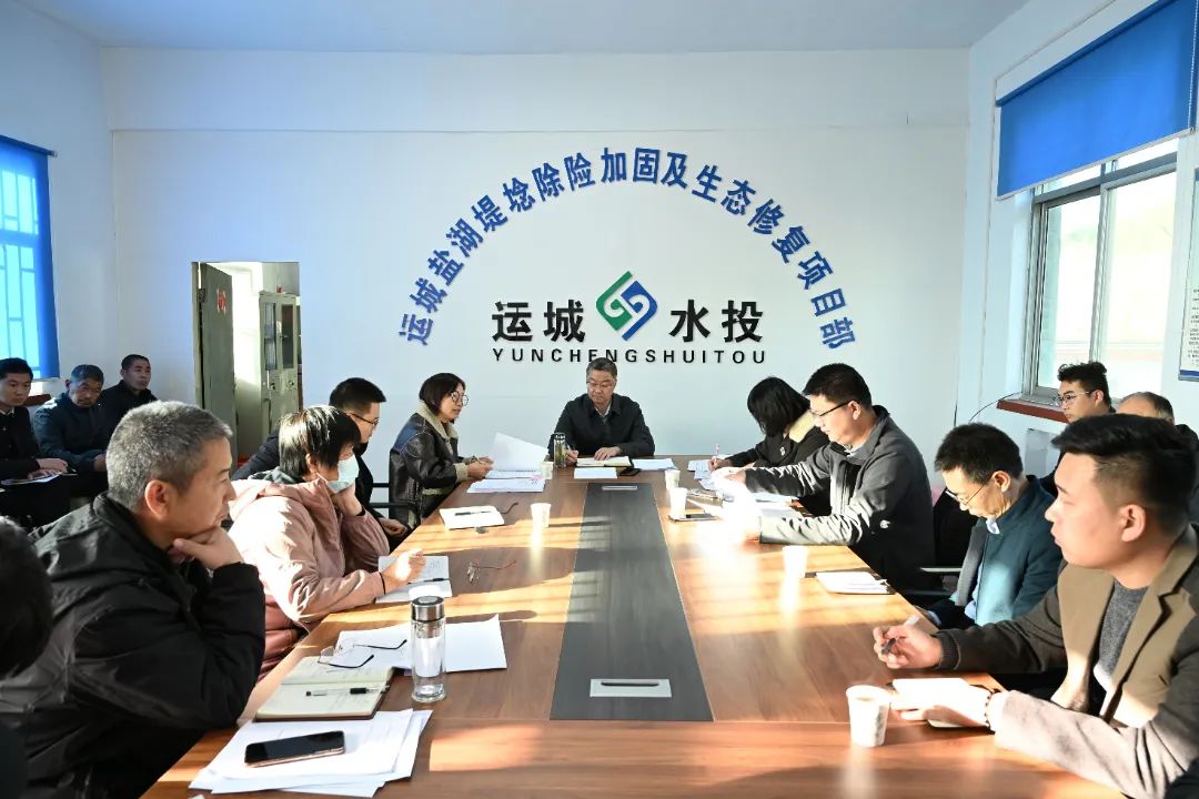 11月26日,市水投公司在鹽湖堤埝除險(xiǎn)加固及生態(tài)修復(fù)項(xiàng)目部召開工作推進(jìn)會(huì)。公司董事長(zhǎng)薛文兵、總經(jīng)理?xiàng)钏仄?、?xiàng)目部全體人員及監(jiān)理單位、設(shè)計(jì)單位、施工單位相關(guān)負(fù)責(zé)人40余人參會(huì)。