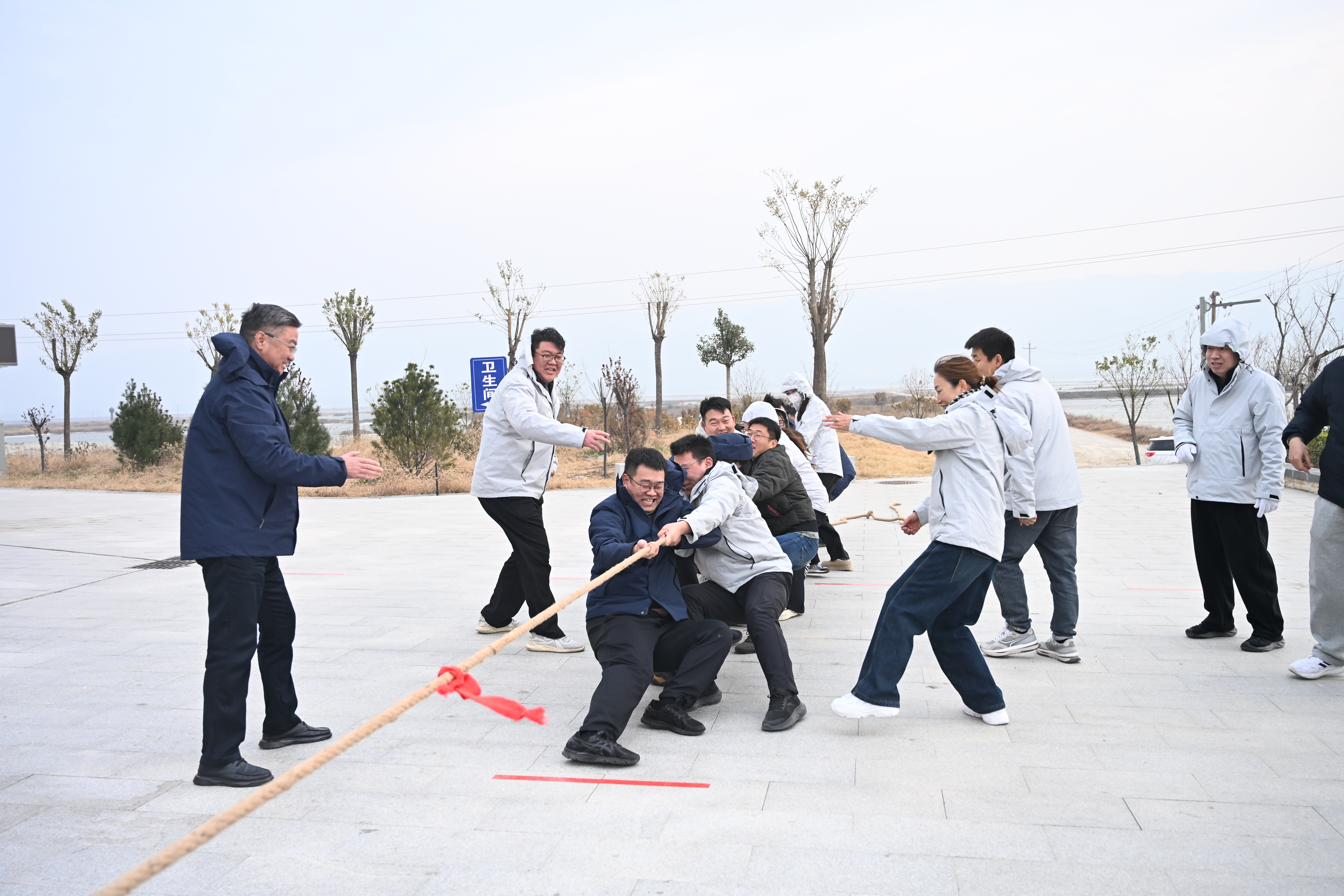 本次運(yùn)動(dòng)會(huì)設(shè)有“氣球轉(zhuǎn)運(yùn)”“團(tuán)隊(duì)拔河”“小火車觀光”三個(gè)特色項(xiàng)目,全體干部員工分為四個(gè)小隊(duì)展開角逐。盡管寒風(fēng)凜冽,但活動(dòng)現(xiàn)場(chǎng)始終暖意融融、氣氛熱烈。“氣球轉(zhuǎn)運(yùn)”環(huán)節(jié),各組隊(duì)員背靠背、肩并肩,默契配合傳遞氣球,歡聲笑語間盡顯協(xié)作智慧;拔河賽場(chǎng)上,各組選手緊握長繩、穩(wěn)扎腳步,“一二、加油!”的吶喊聲震徹全場(chǎng),一股繩、一條心,生動(dòng)詮釋了團(tuán)結(jié)拼搏的強(qiáng)大力量;“小火車觀光”環(huán)節(jié)別具一格,職工們沿途欣賞冬日鹽湖靜謐美景,投喂天鵝、漫步棧道,在輕松愜意的氛圍中交流工作、暢談生活,進(jìn)一步增進(jìn)了同事情誼,讓休閑時(shí)光充滿溫度與意義。