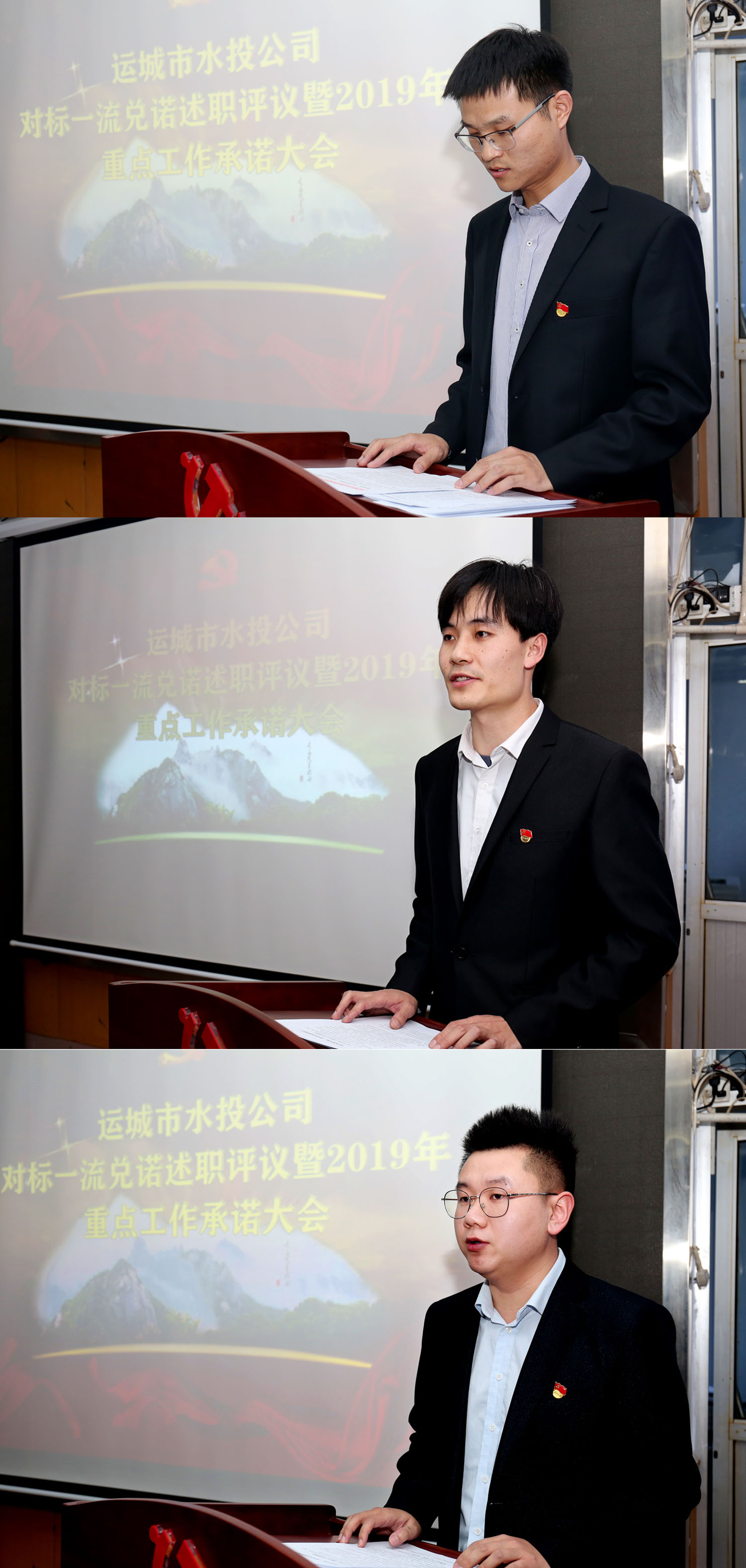 會上,領(lǐng)導(dǎo)班子副職和黨辦、綜合辦、財務(wù)部、工程部主要負責(zé)人圍繞2018年年初承諾事項兌諾述職,就2019年重點工作向公司黨委、董事會和全體員工進行公開承諾。公司班子成員進行了點評,參會人員進行了述職測評。